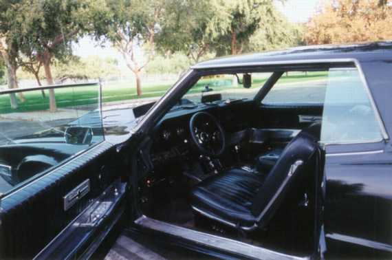 After I got the car running well (try 300 horsepower to the rear wheels) I had the car painted black and had the hood modified so that it would accomodate the tall intake/carb setup. I had to run the car without a hood for a while before it was modified. I also added running lights behind the blacked out front grill that are on when the car is on and, I added a floor shifter for the automatic transmission (b&m quicksilver shifter). Alot better than the factory column shifter. Otherwise, the interior is stock exept the cd player in dash and aftermarket speakers with tach.